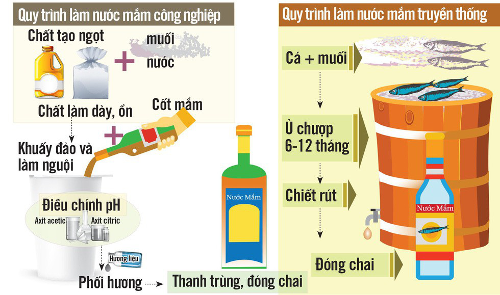 Sơ đồ sản xuất nước mắm công nghiệp và truyền thống - ảnh internet