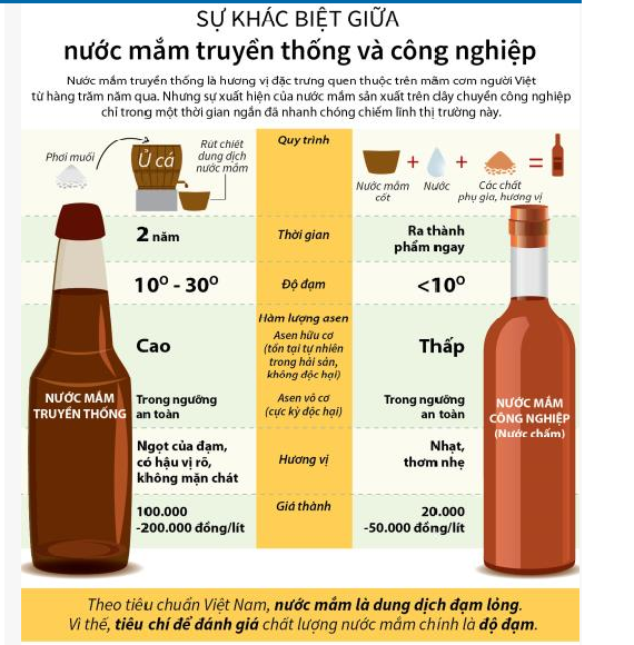 Theo khảo sát, 75% người việt thích dùng nước mắm công nghiệp vì giá rẻ, màu sắc đẹp mắt, vị nhạt không đậm vị như nước mắm truyền thống.