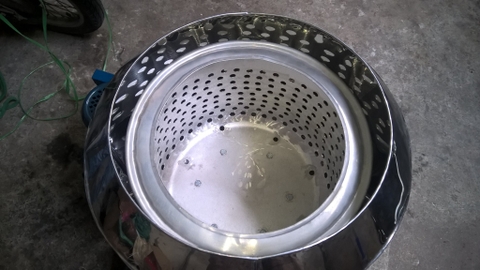 - Miệng lồng dạng hình vòm, hạn chế nguyên liệu cần vắt bị văng ra ngoài trong quá trình vắt. Phía dưới đáy có van thoát nước, lượng nước cốt sau khi vắt sẽ chảy ra ngoài.