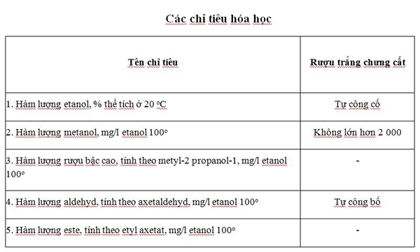 Yêu cầu về thành phần một số chất hóa học trong rượu và định mức cần tuân thủ để đảm bảo chất lượng an toàn cho người sử dụng.