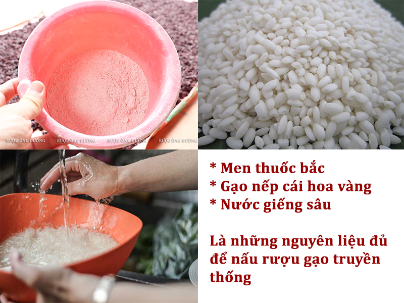 Nguyên liệu chủ yếu để có thể nấu rượu ngon đó là gạo,ngô,sắn,… và men, ngoài ra còn có nước. Tùy thuộc vào từng nhu cầu của từng cơ sở nấu rượu để lựa chọn loại nguyên liệu làm sao cho phù hợp. Nhìn chung nguyên liệu phải đảm bảo độ ngon, không bị mốc, hôi,…